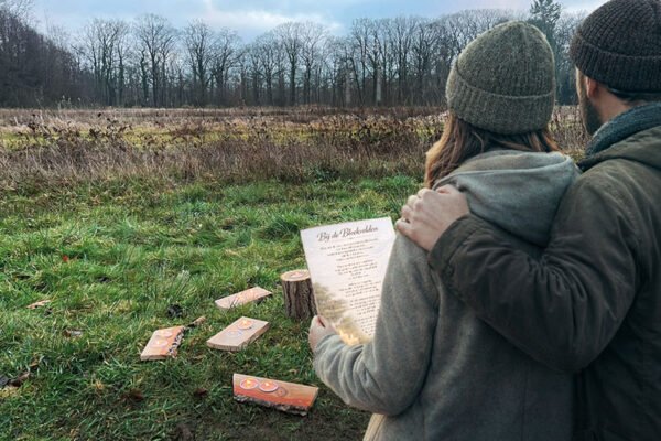 Luuk Assinck van uitvaartonderneming Natuurlijk Gemisorganiseert wandelingen waarin ruimte is voor rouw en herinnering. Eind december leidde hij een groep van tien mensen naar de Bleekvelden voor een bijzondere winterwandeling.